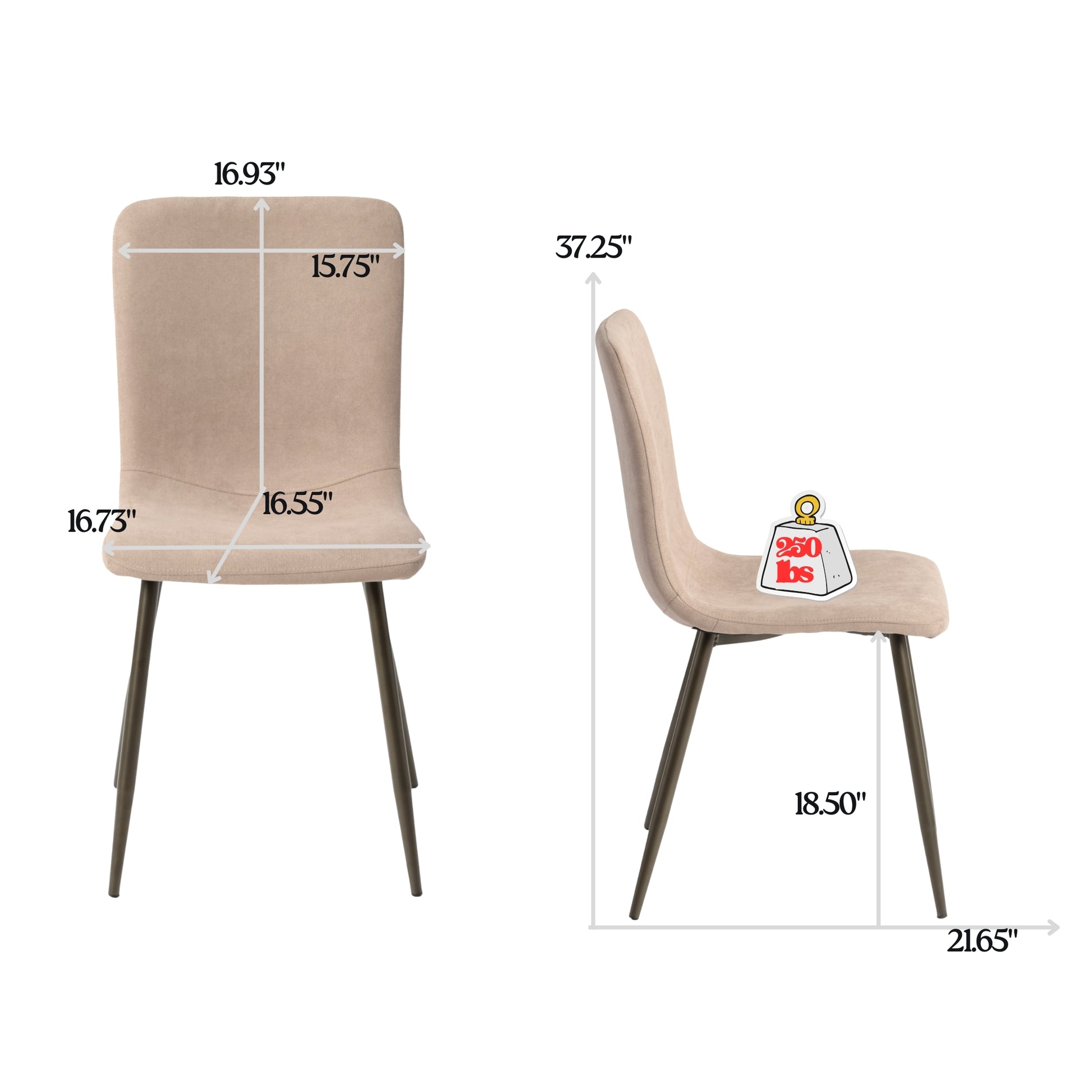 Upgrade your living room, bedroom, office, apartment, dorm, or workspace with the Homy Casa SCARGILL Beige Oak Leg Dining Chair Set. Designed for both style and comfort, these chairs feature a light beige brushed fabric upholstery and sturdy oak-finished metal legs, making them perfect for small spaces and modern homes. The ergonomic design and high-density foam provide lasting support, while the compact size fits seamlessly into any home or workspace. Ideal for dining areas, these chairs blend functionality with contemporary aesthetics to enhance your interior decor.