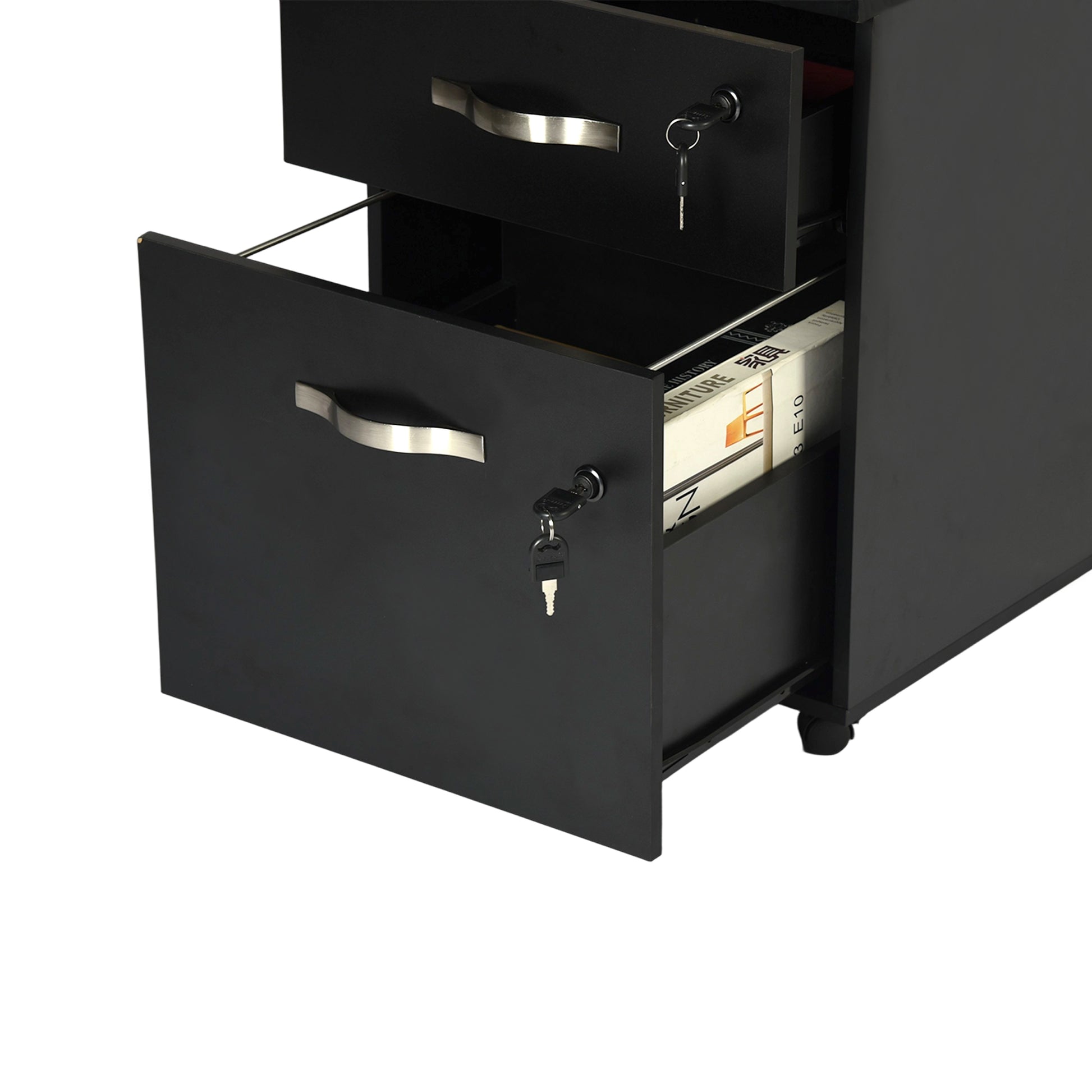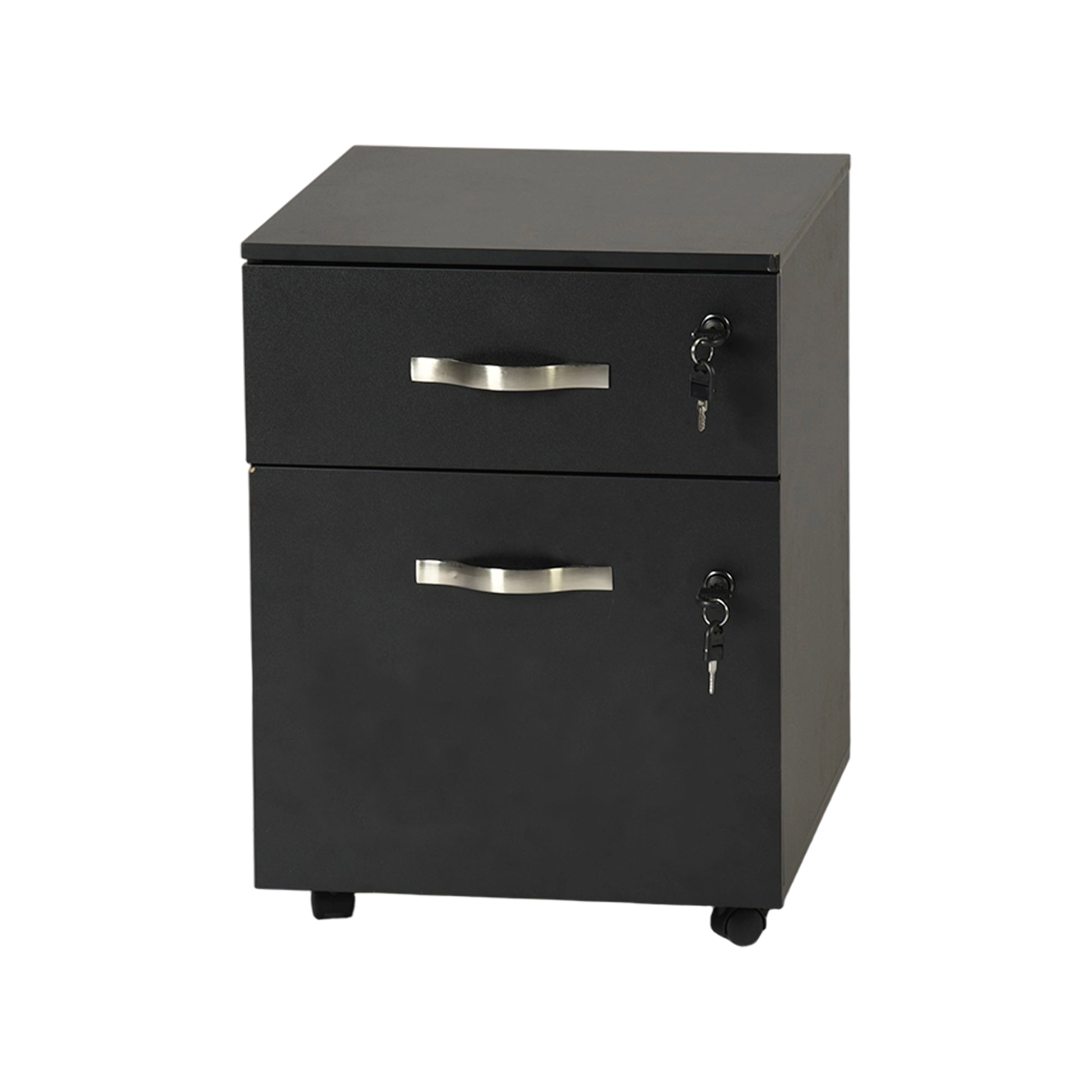 Locking 2 drawer file cabinet with metal body and smooth casters for home office storage. Keep supplies and files secure while saving space under the desk.