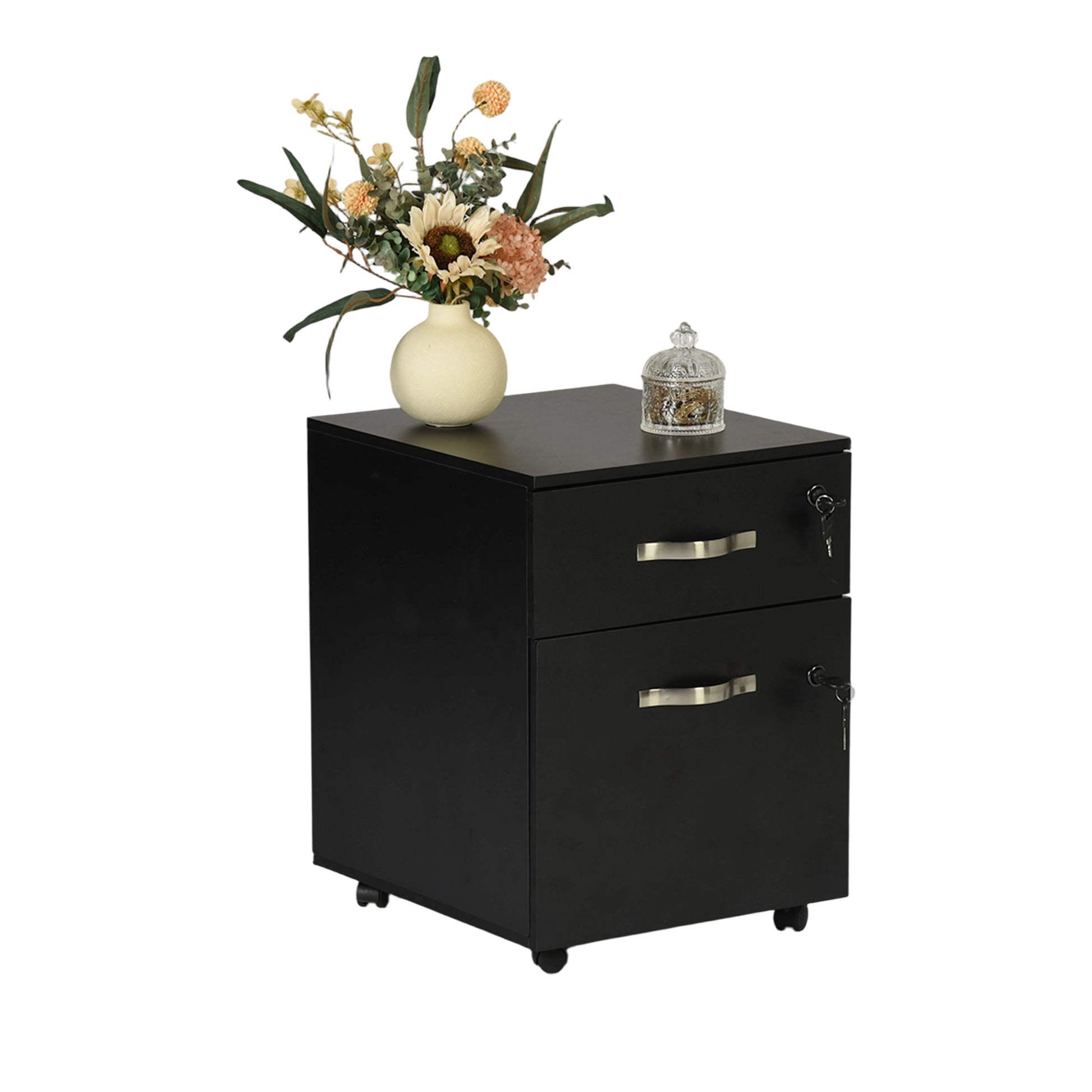 KASSADIN 2 Drawer Mobile File Cabinet, Locking Metal Filing Cabinet on Wheels for Home Office, Black Pedestal with Keys