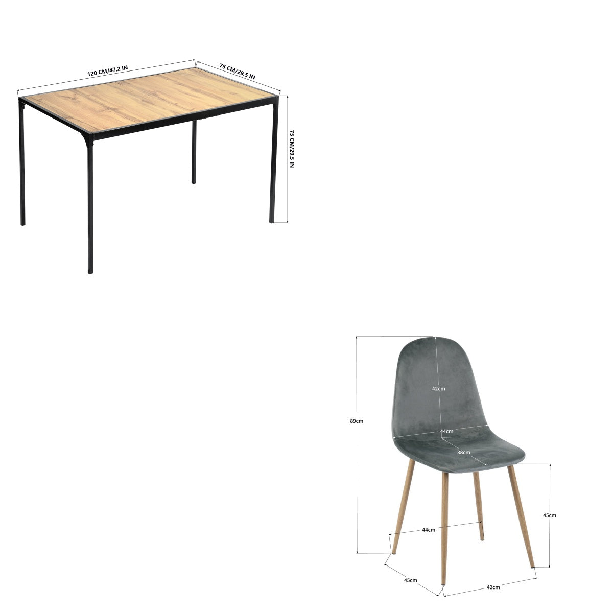 Homy Casa Milliken 5 Piece Dining Table Set 47“ Oak Table with 4 Charlton Velvet Grey Upholstered Chairs