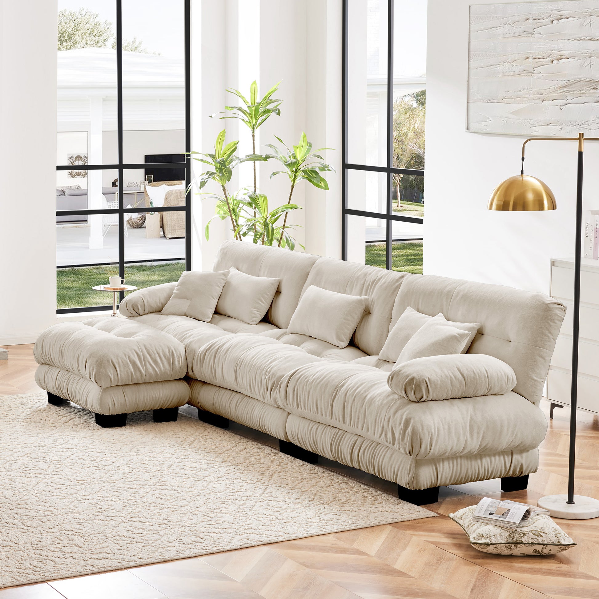 Monterey 134" Modular Chenille Cloud L-Shaped Sectional Sofa with Convertible Ottoman