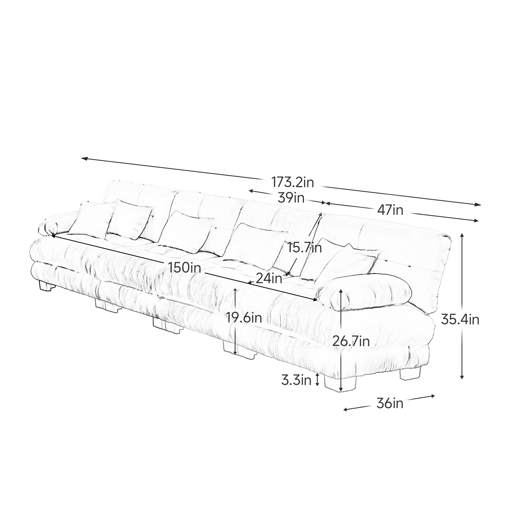 Monterey 173" Extra Large Modular Chenille Cloud Sectional Sofa with Bolstered Armrests