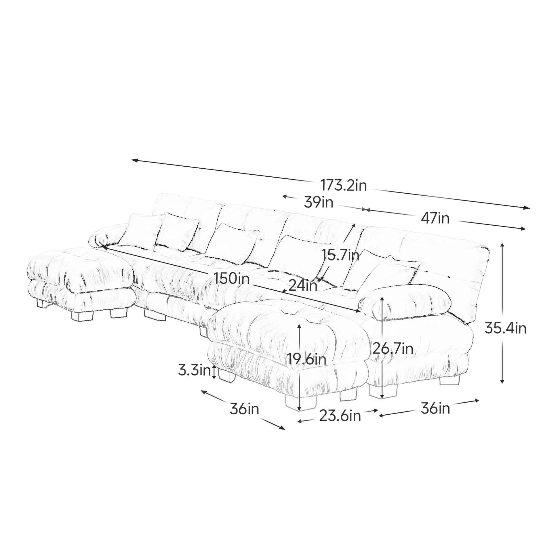 Monterey 173" Oversized Modular Chenille U-Shaped Cloud Sectional Sofa with 2 Ottomans