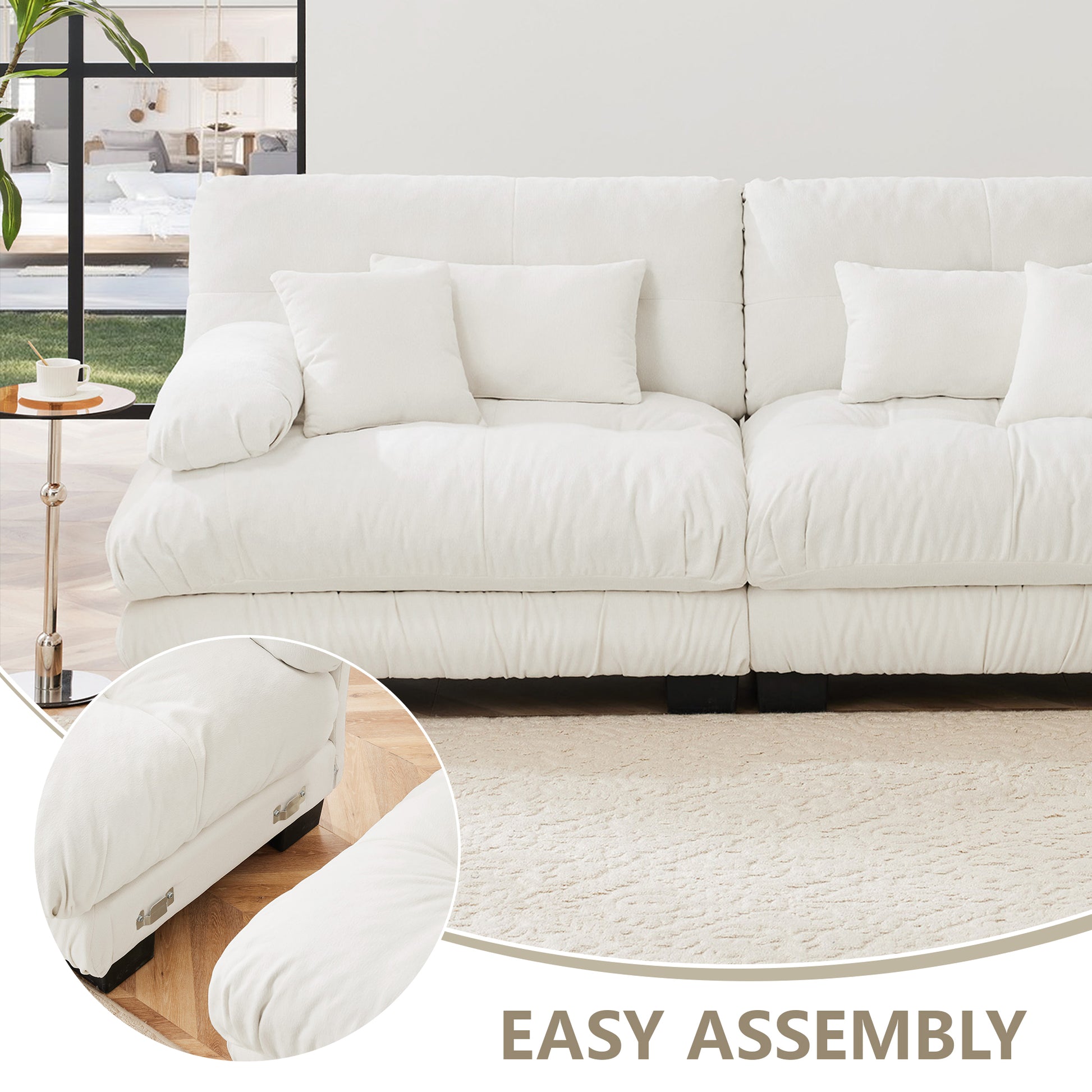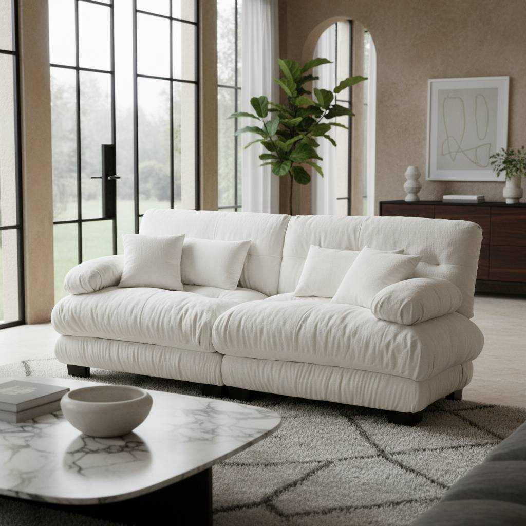 This chenille cloud couch redefines relaxation with its deep, plush seating and cloud-like cushions. Whether curling up with a book, watching movies, or enjoying quiet conversations, its soft texture, bolster armrests, and thoughtful design create a space you’ll never want to leave.