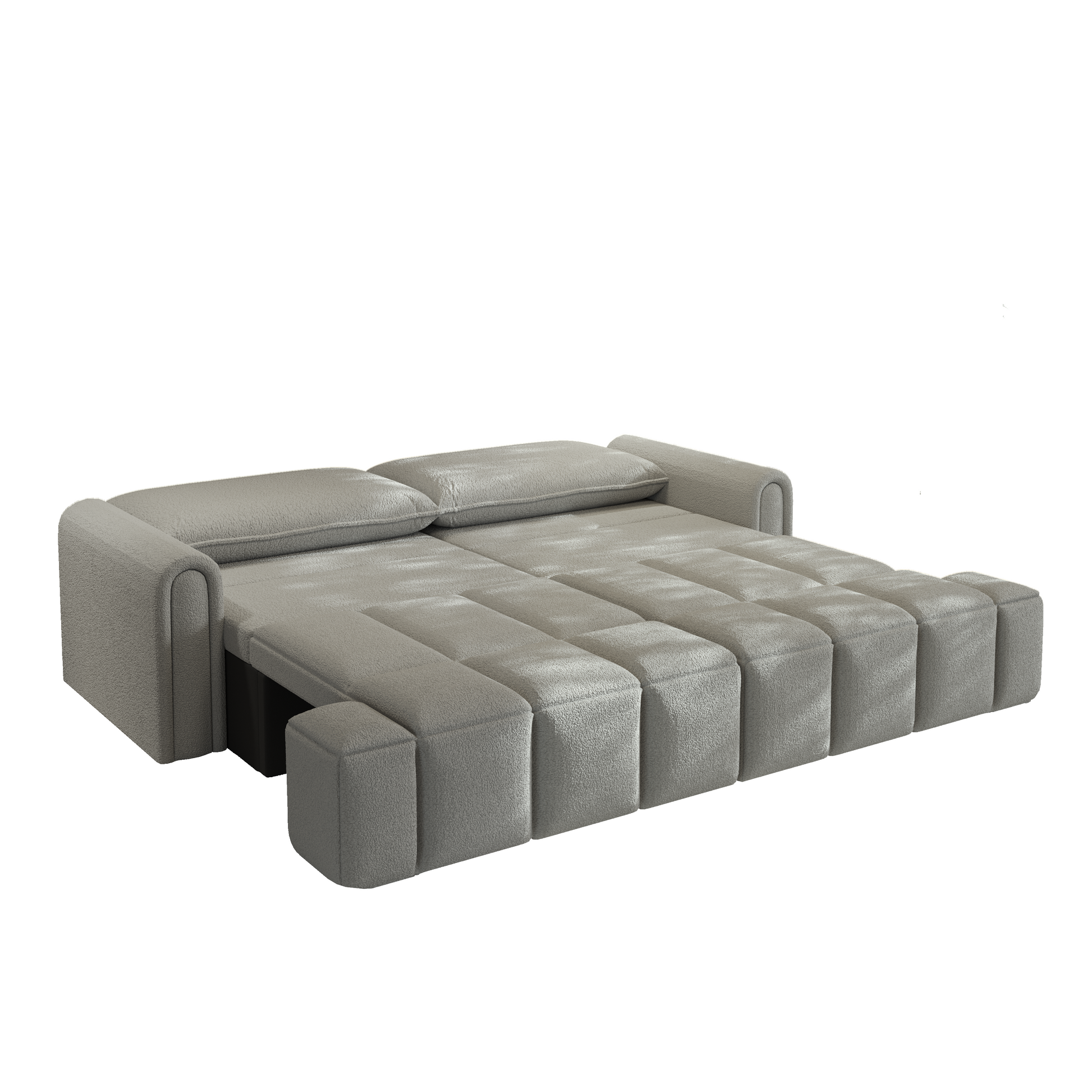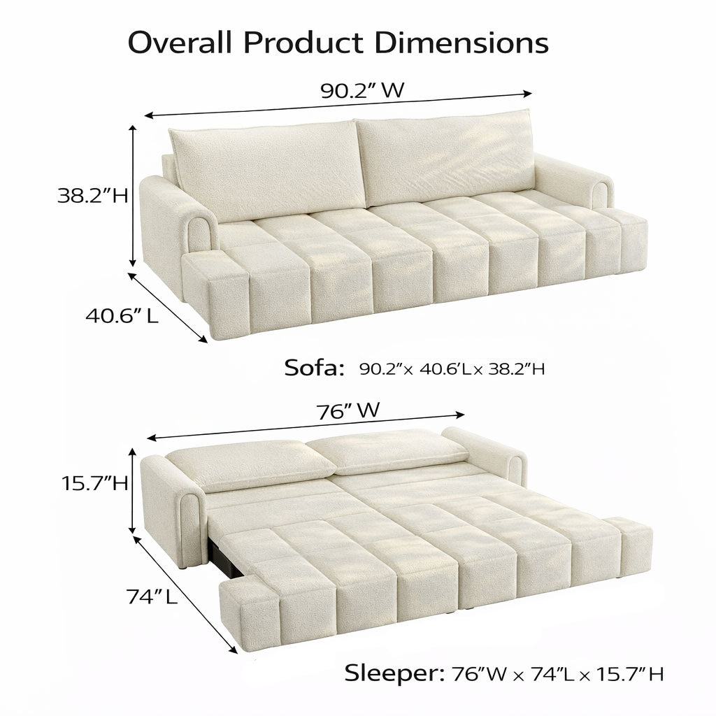 Muncie 90" Teddy Fabric Convertible 4-Seat Sleeper Sofa Bed with Storage