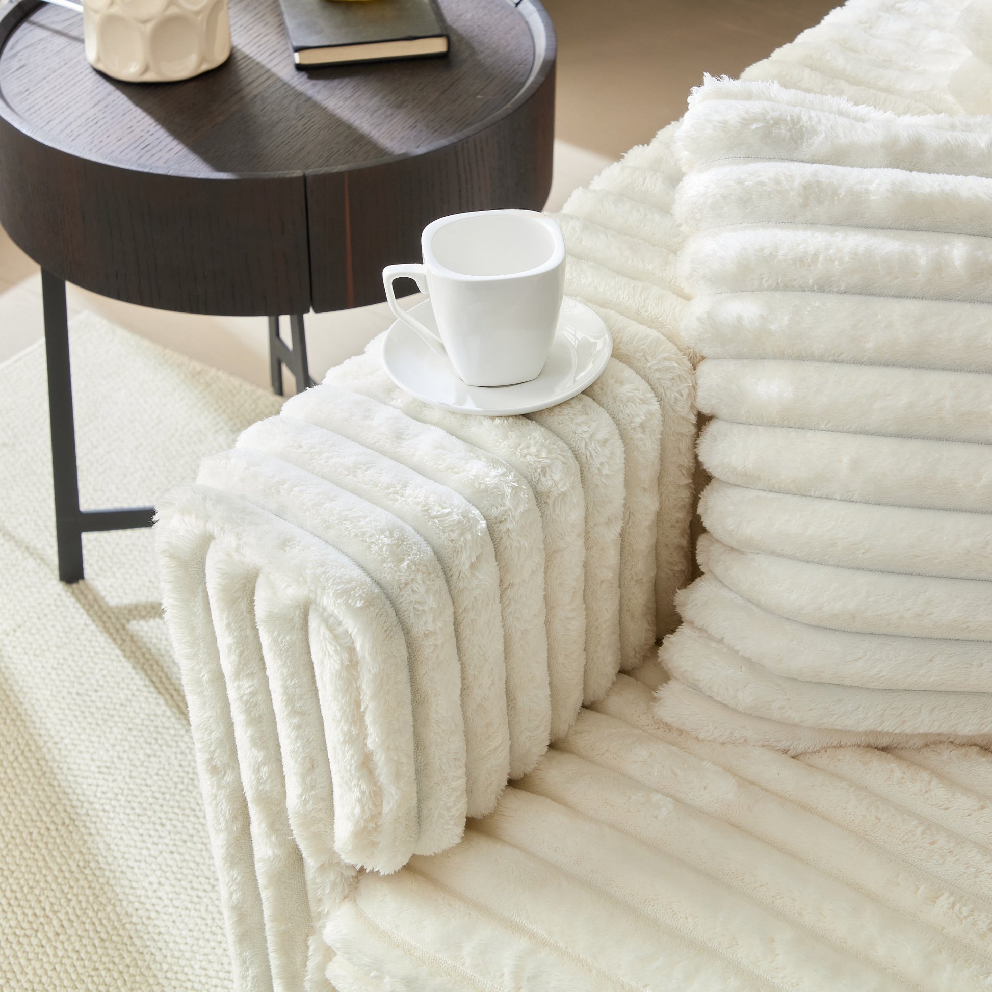 This 104 inch modular plush corduroy sofa features deep seating soft pillows and a cloud like cushioned structure offering luxurious comfort strong support and flexible lounging for modern living rooms.