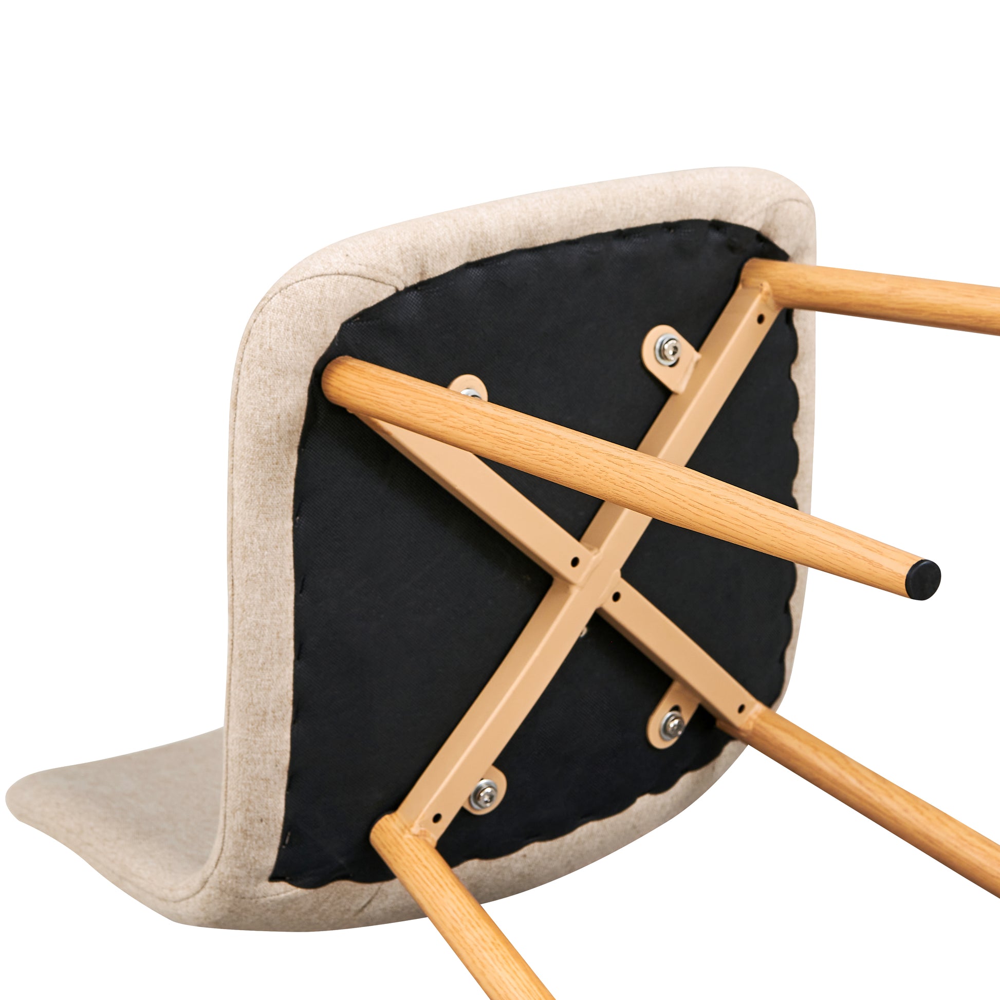 CHARLTON Set of 4 Modern Dining Chairs, Curved Fabric Seats with Wood-Look Metal Legs, Beige Upholstery, Easy Assembly