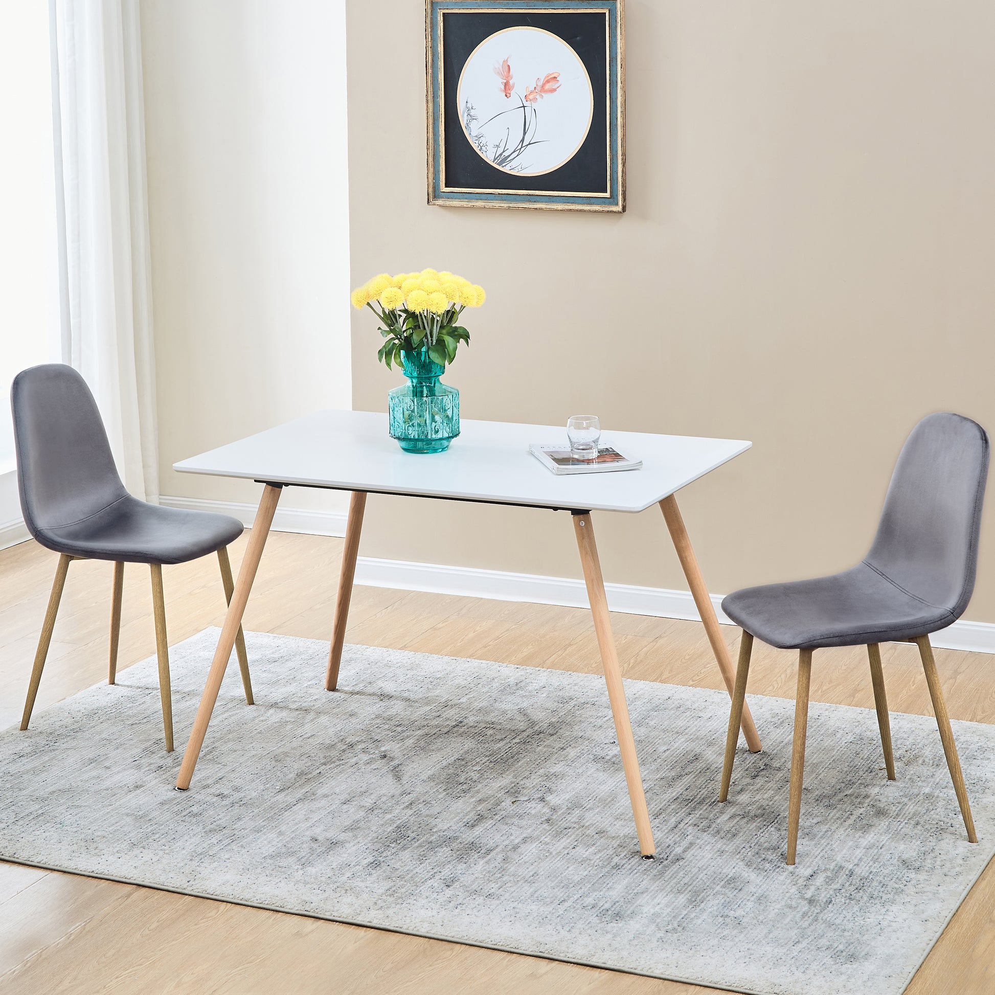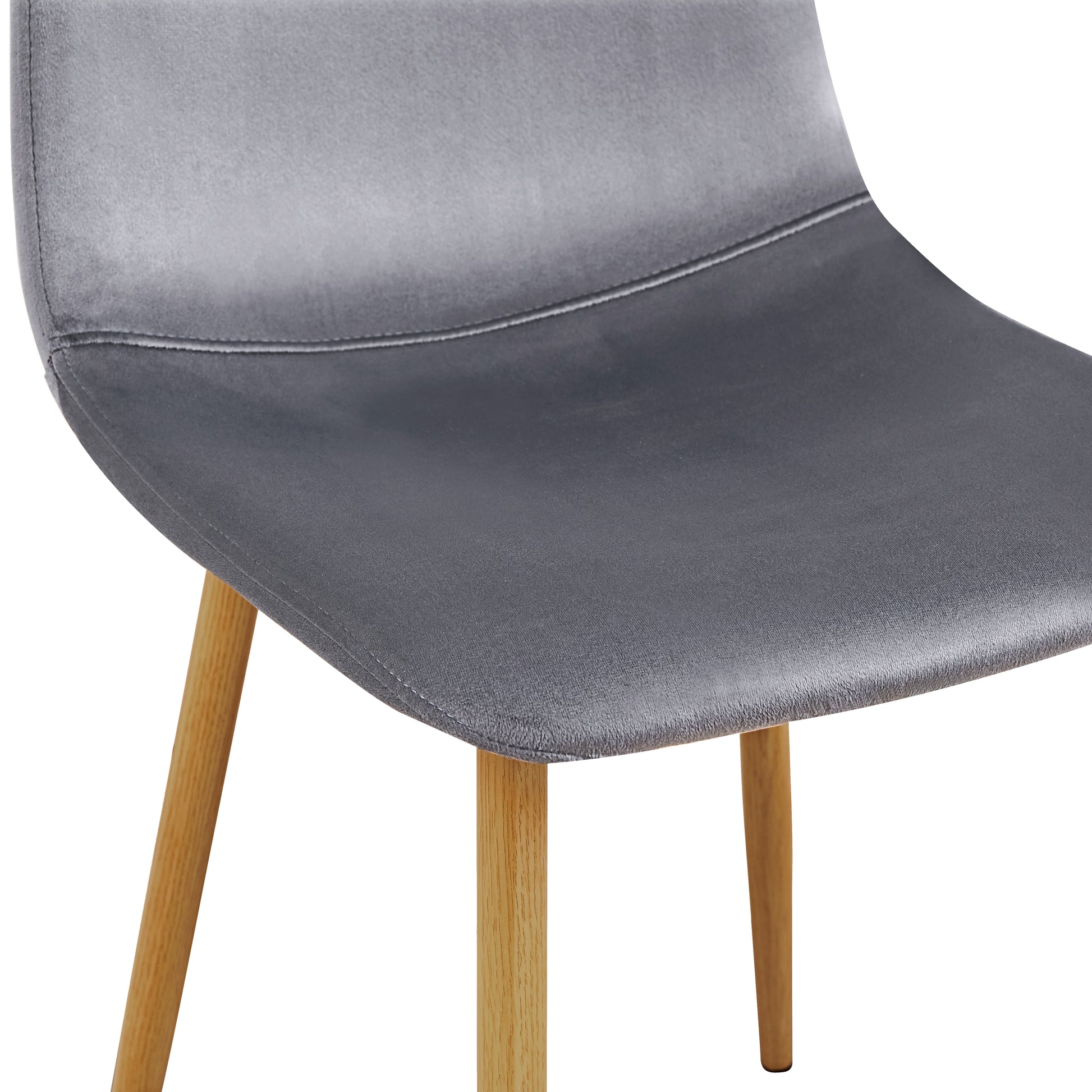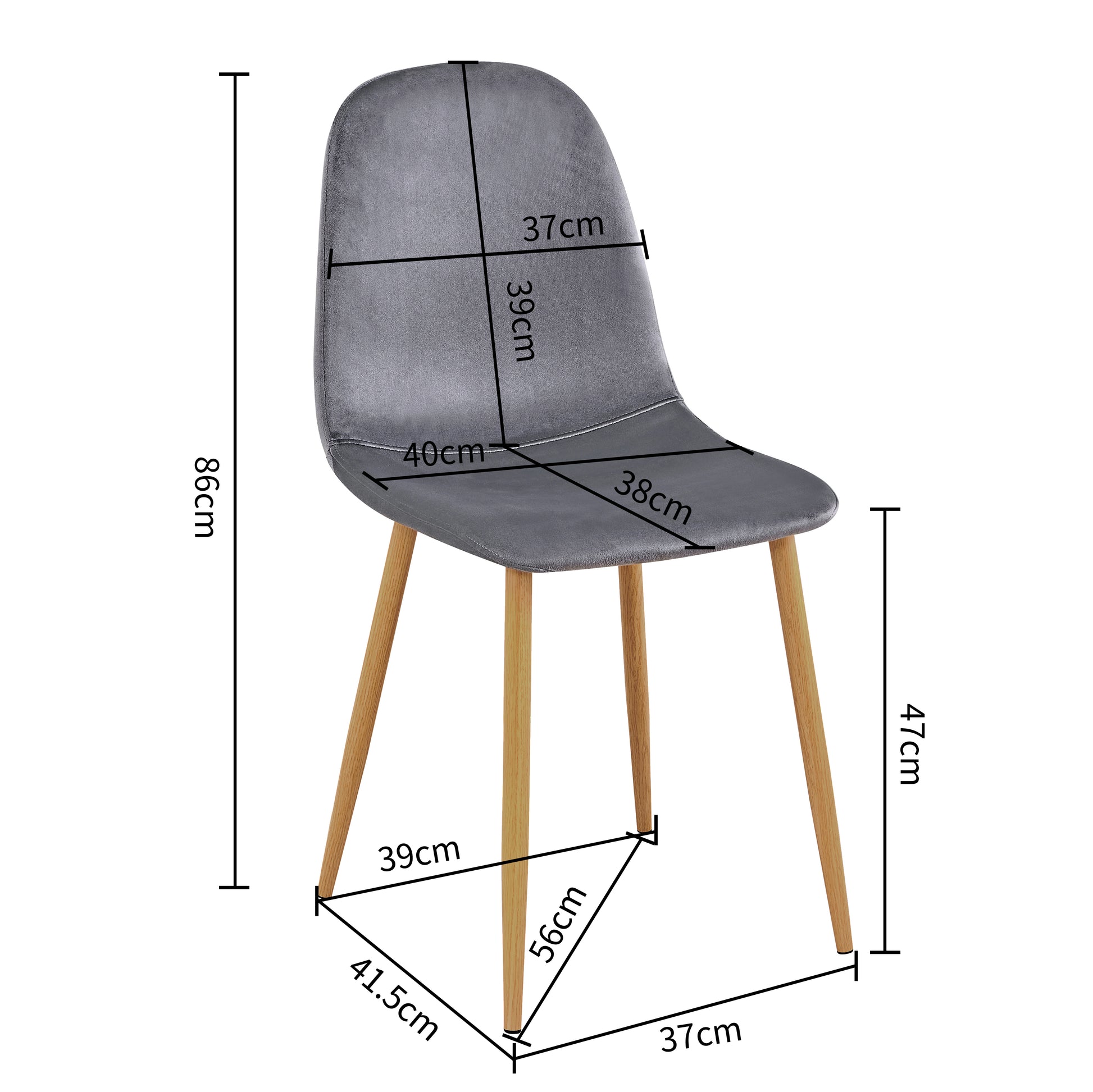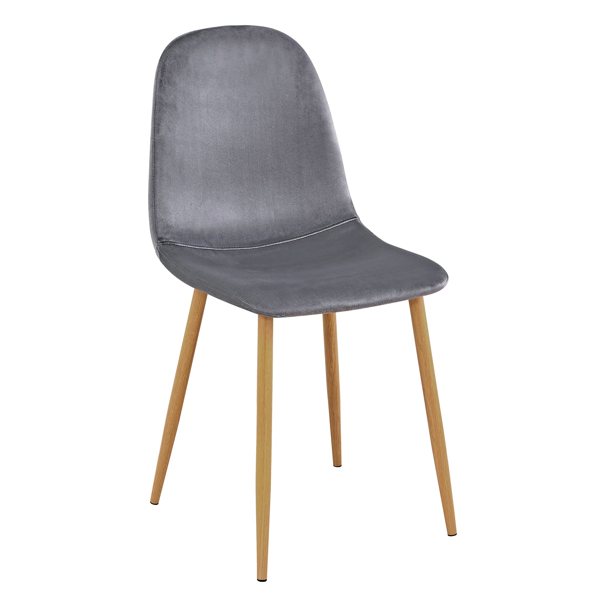 Set of 4 velvet dining chairs with a curved back and wood look metal legs. Soft support, clean silhouette and quick assembly for kitchens and dining rooms.