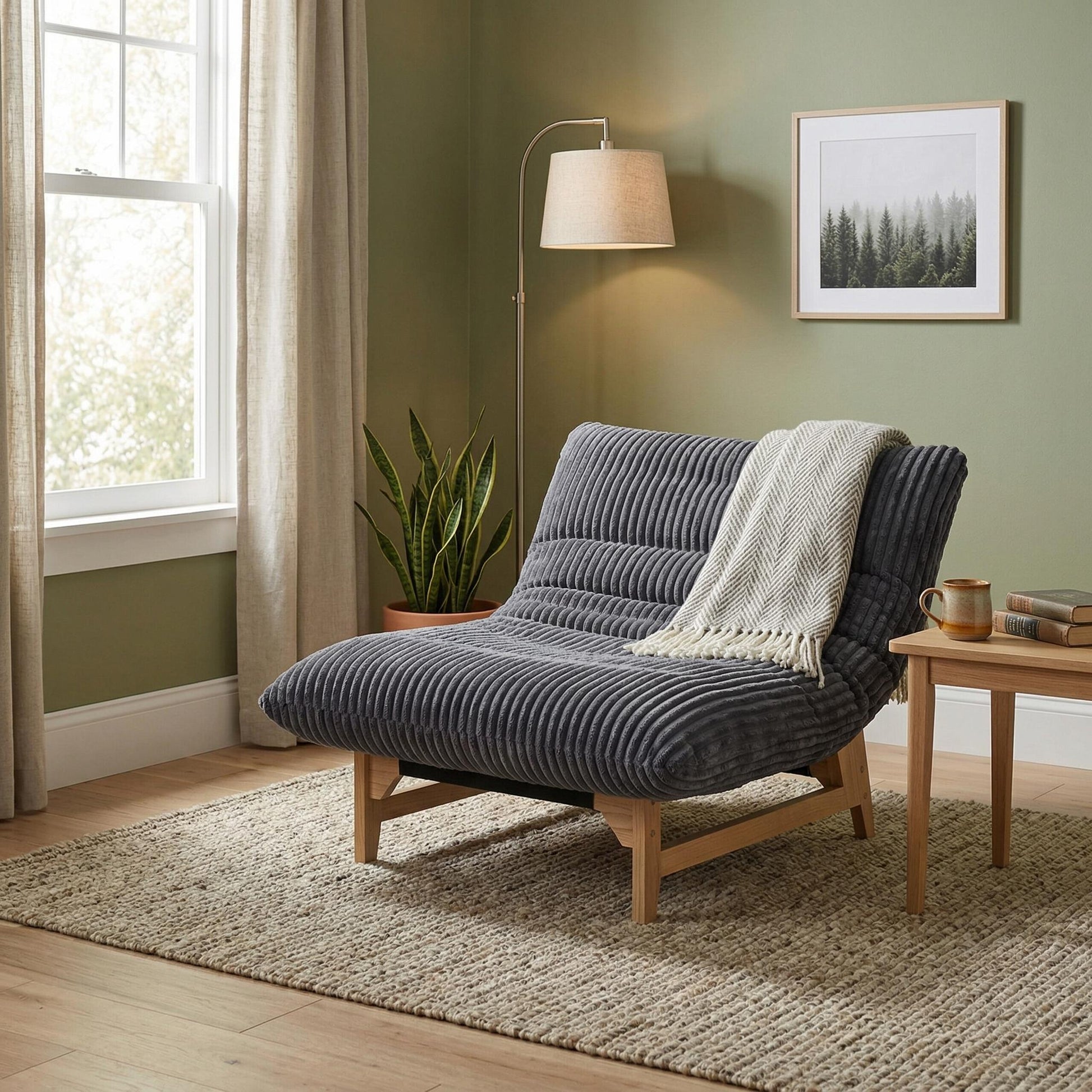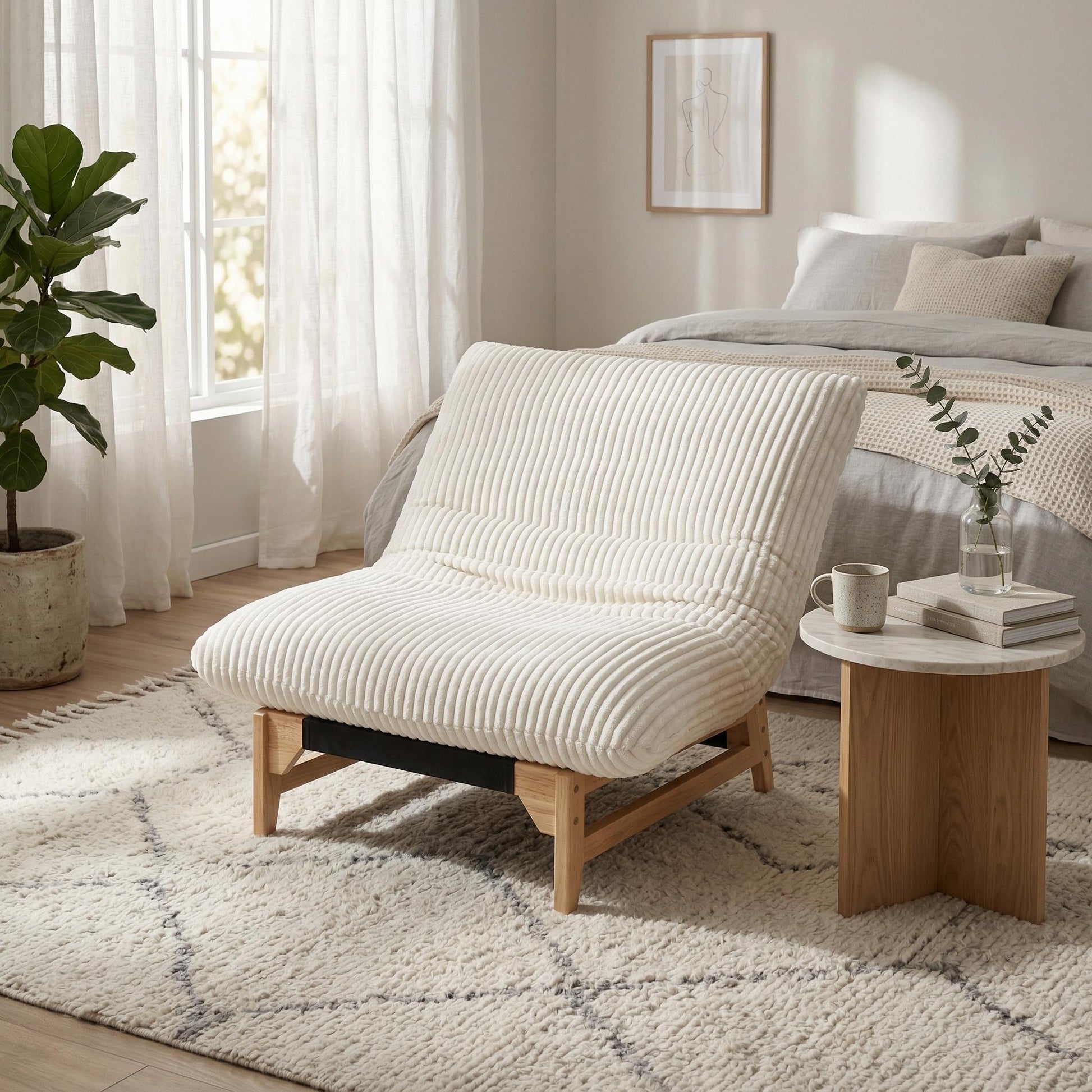 The Sitka Armless Lounge Chair is the seat your home has been missing. An oversized corduroy cushion, a gently reclined wood frame, and a low-profile silhouette come together to create the kind of effortless comfort you actually want to come home to.