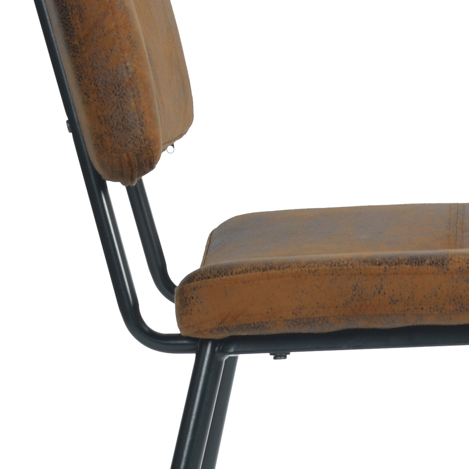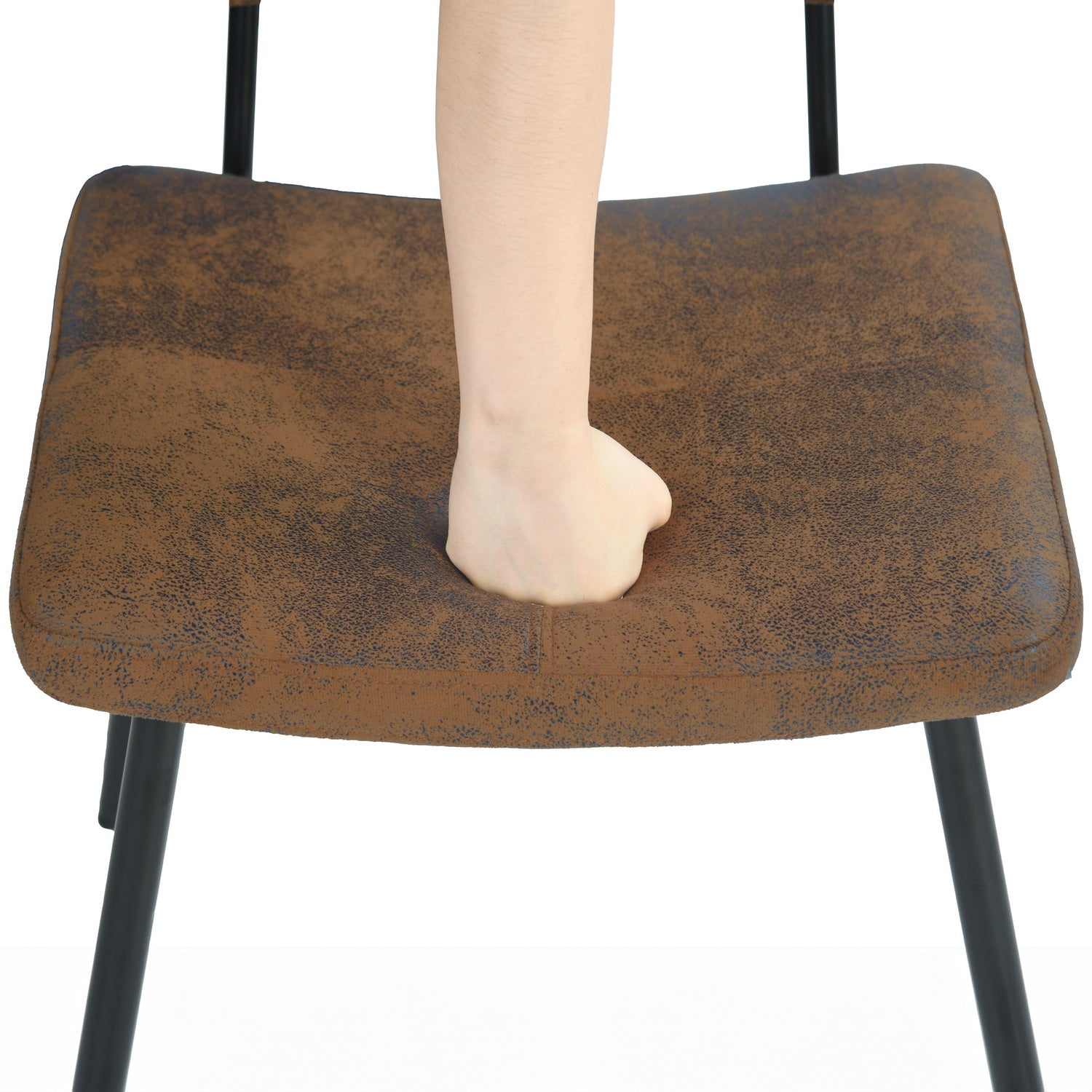 A modern 5-piece dining set featuring a walnut-finished table and four Pomona chairs in suede brown or beige fabric. Perfect for compact dining spaces.