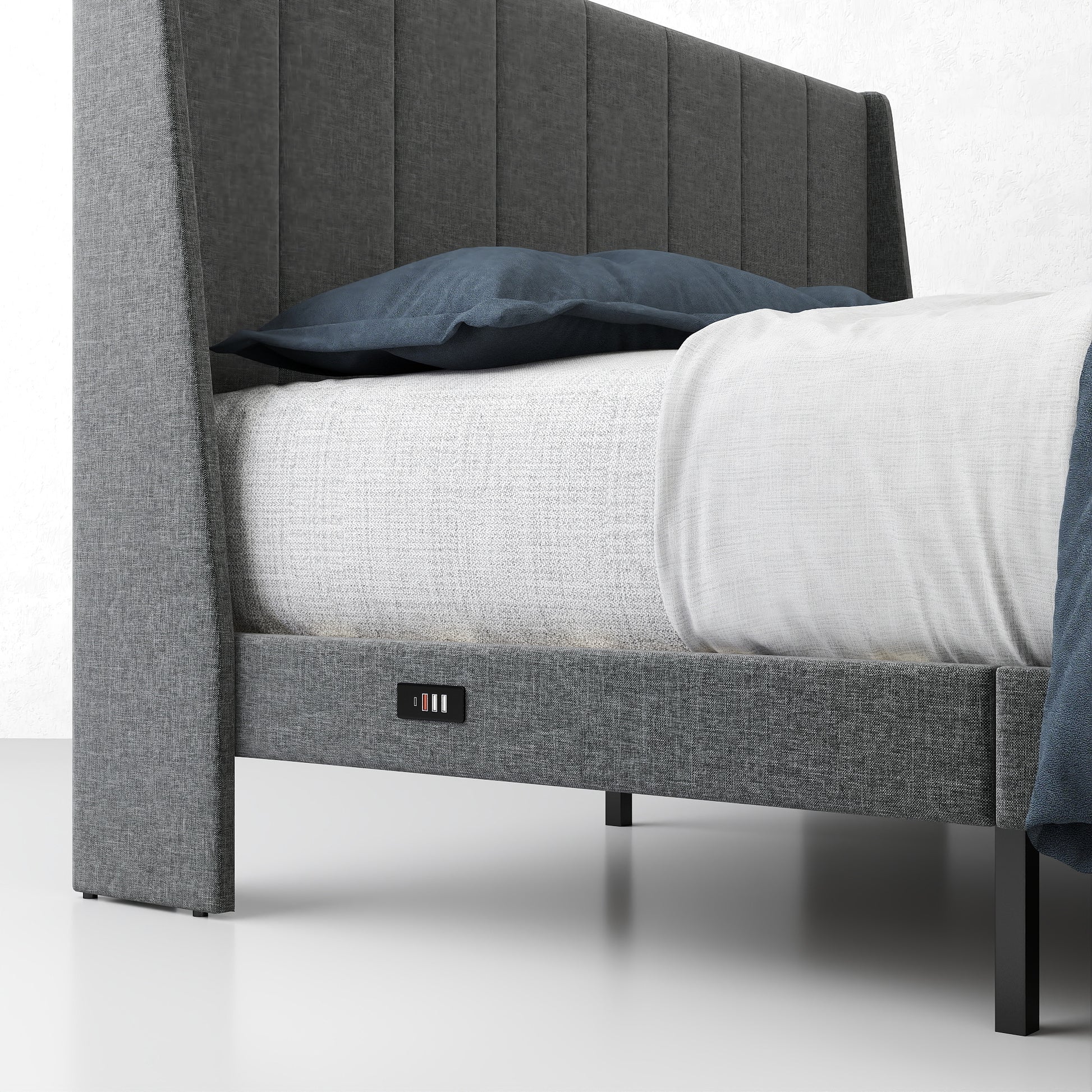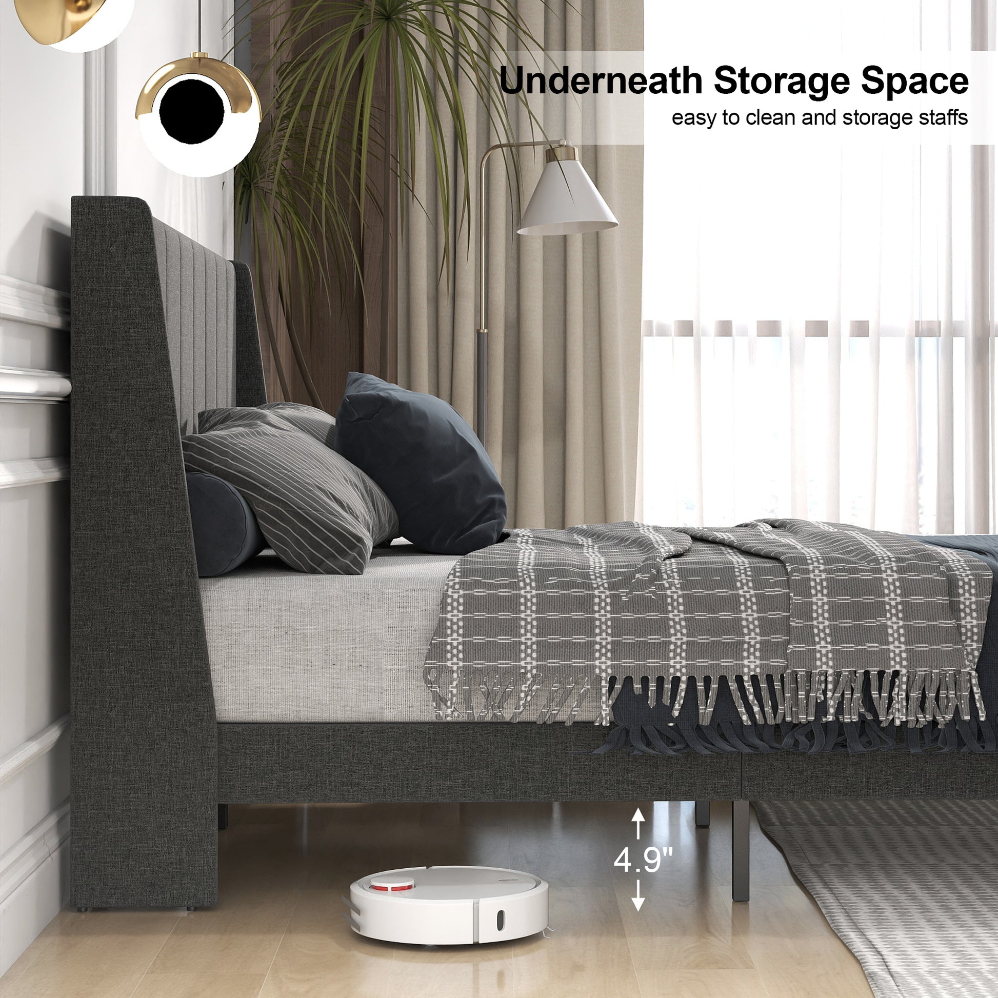 SUMMIT Upholstered Platform Bed with Wingback Headboard