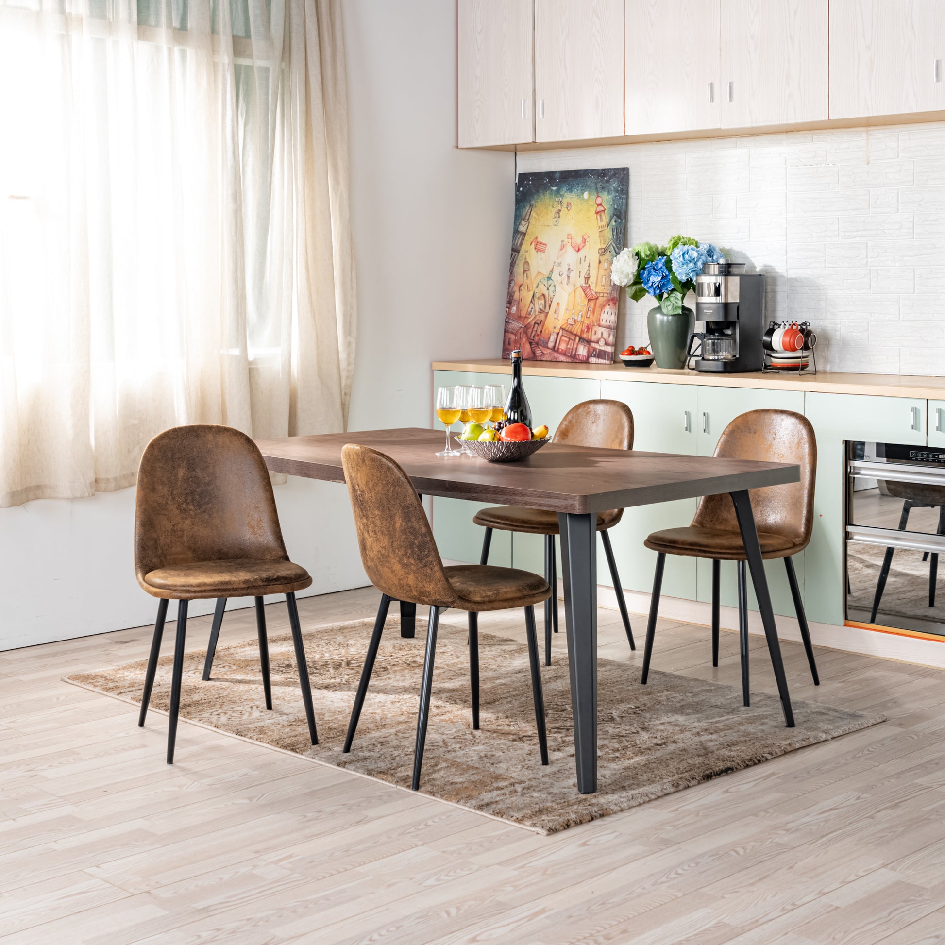 These chairs channel the vintage charm of retro diners with modern comfort upgrades. From the aged faux suede texture to the gently curved seat, every detail balances aesthetic warmth with support. Whether you're gathering for meals or entertaining guests, this chair set brings character and function to the table.