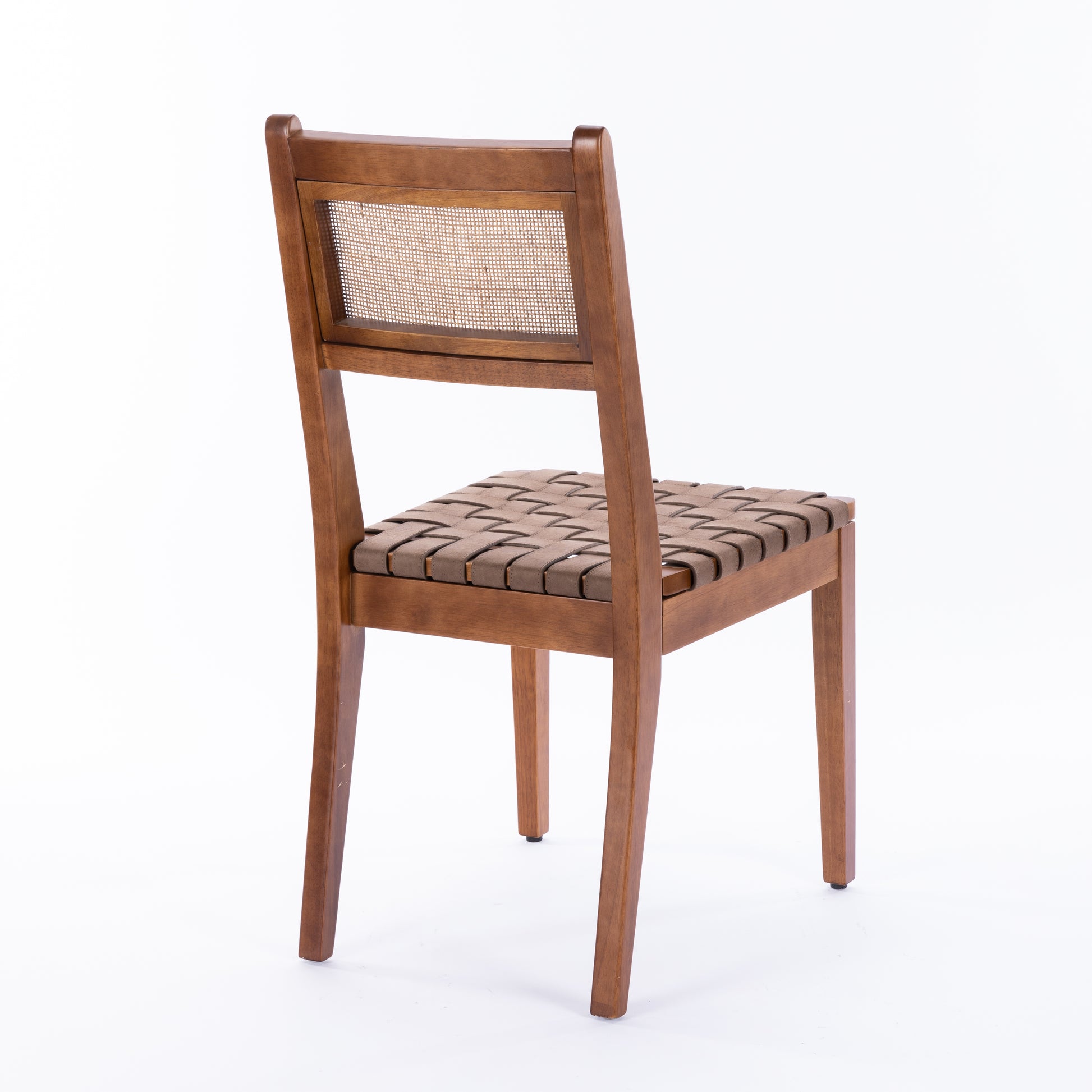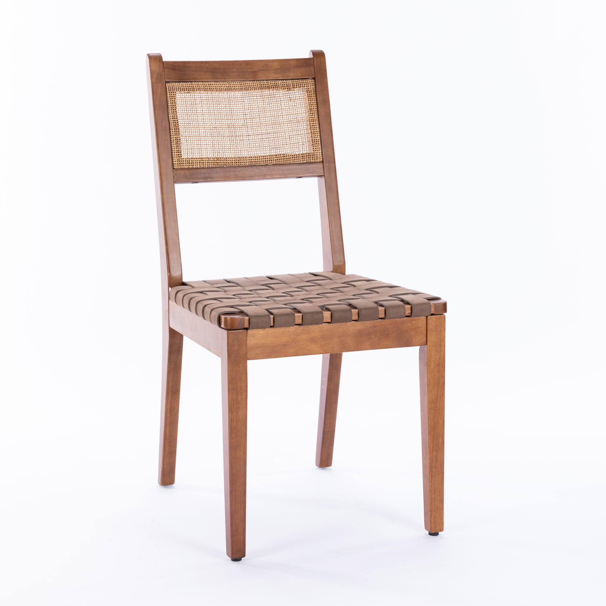 Tagus Modern Rattan Leather Woven Strips Dining Chair Set of 2