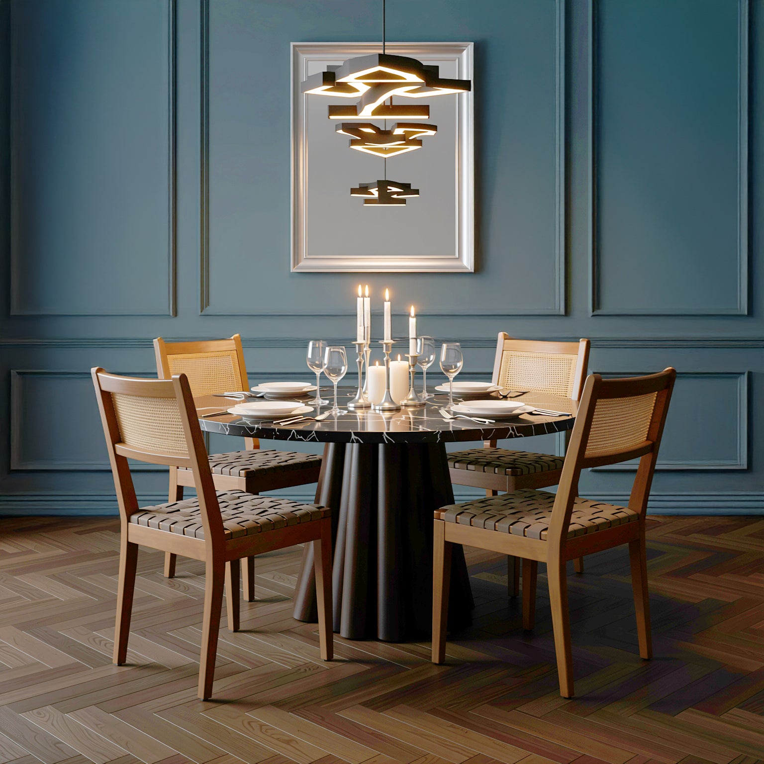 Tagus Modern Rattan Leather Woven Strips Dining Chair Set of 2