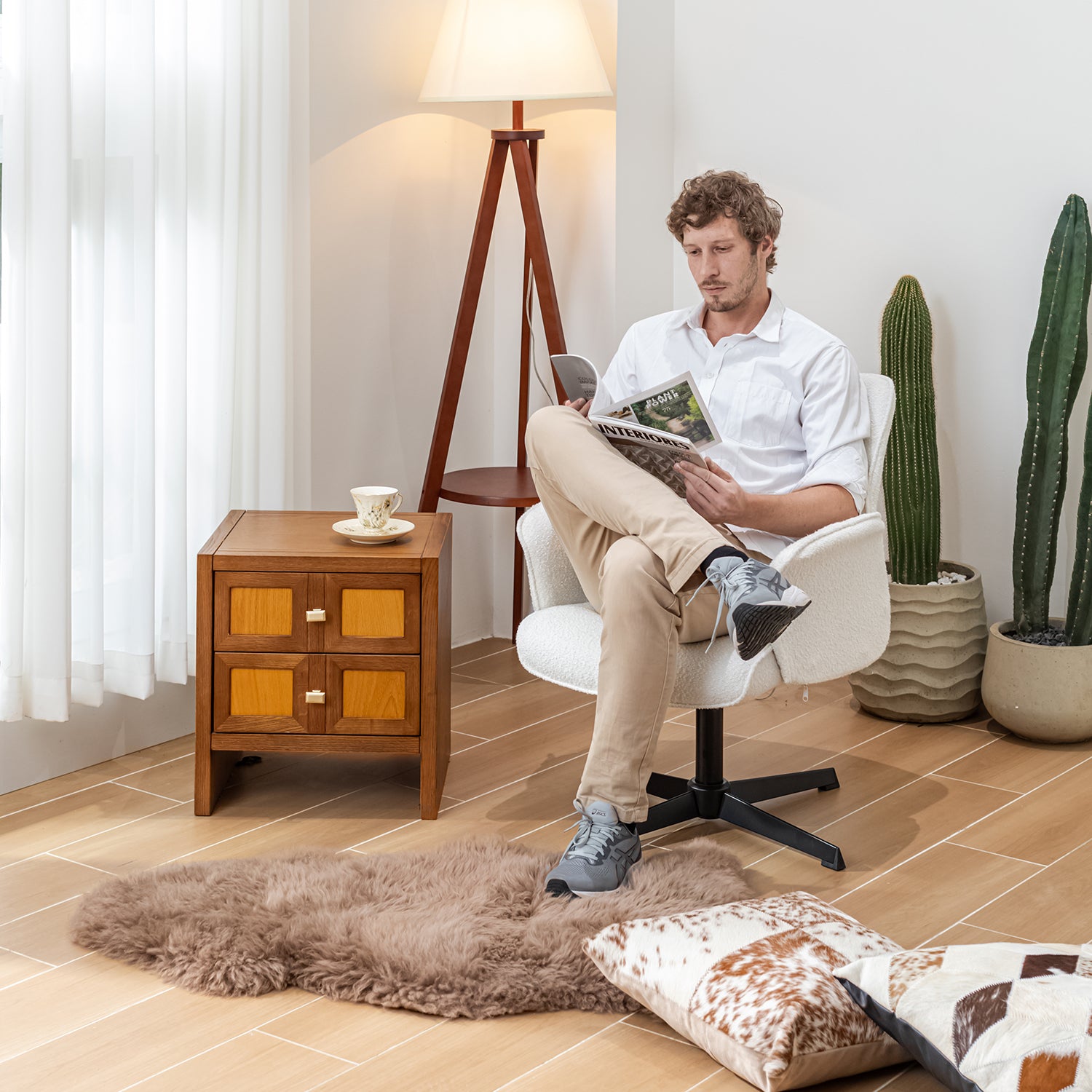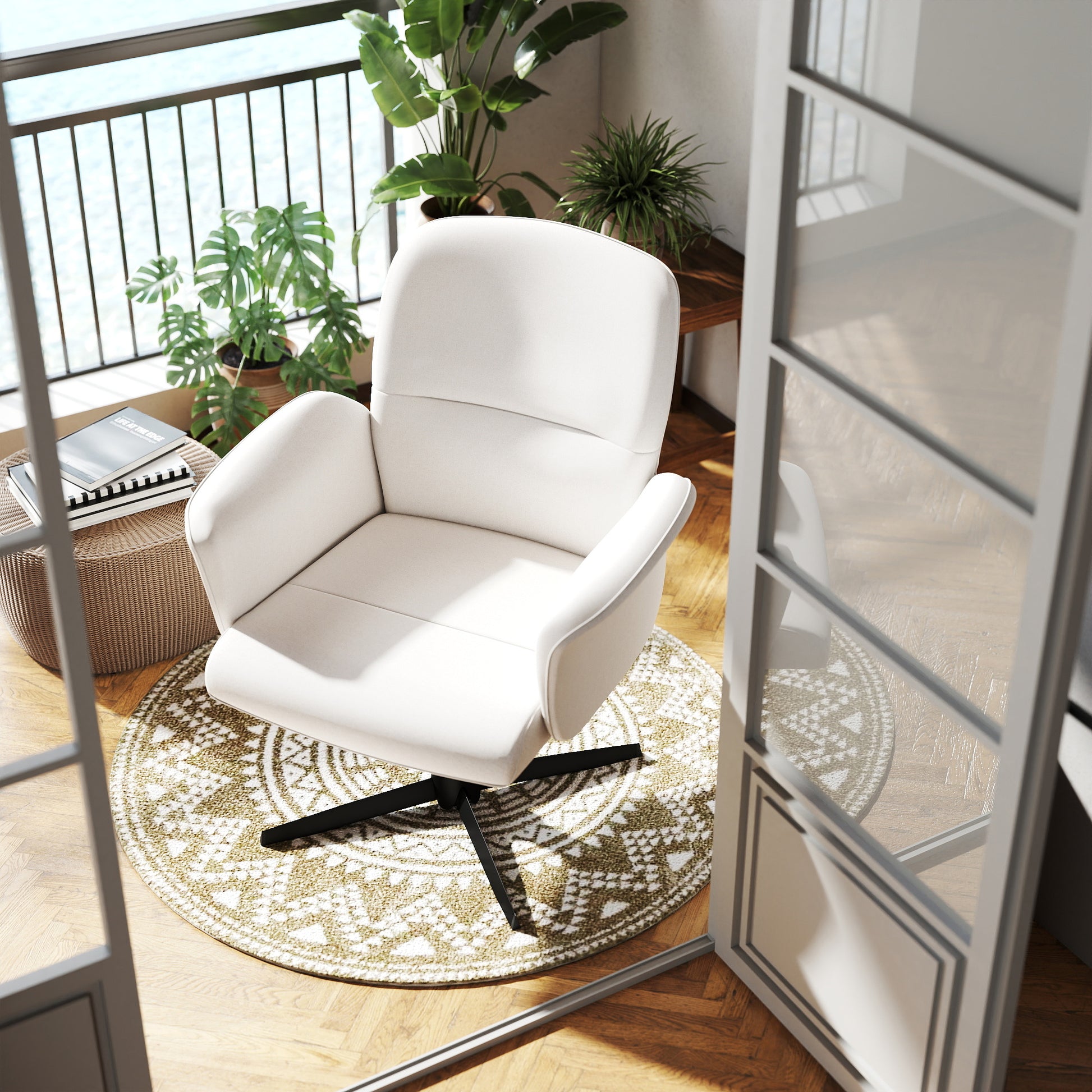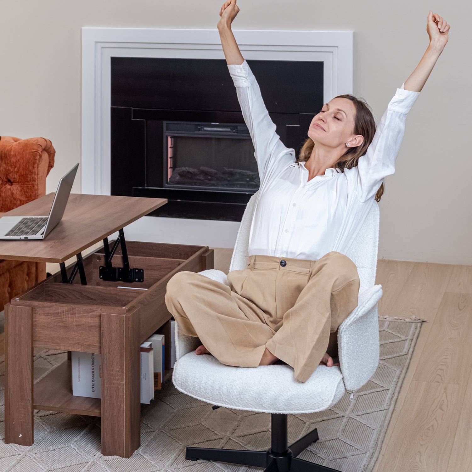 Inspired by the desire to create a chair that’s as inviting as your favorite armchair yet as functional as a desk seat, Thomasina blends relaxed elegance with practical design. Its boucle texture or vintage suede tones bring warmth and tactility to modern interiors -perfect for workspaces that need a touch of personality.