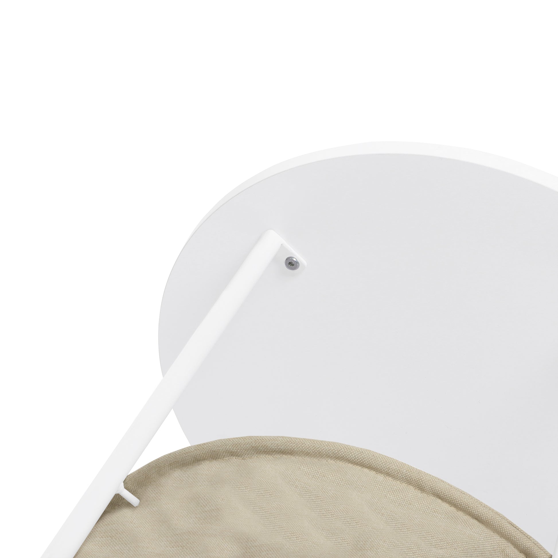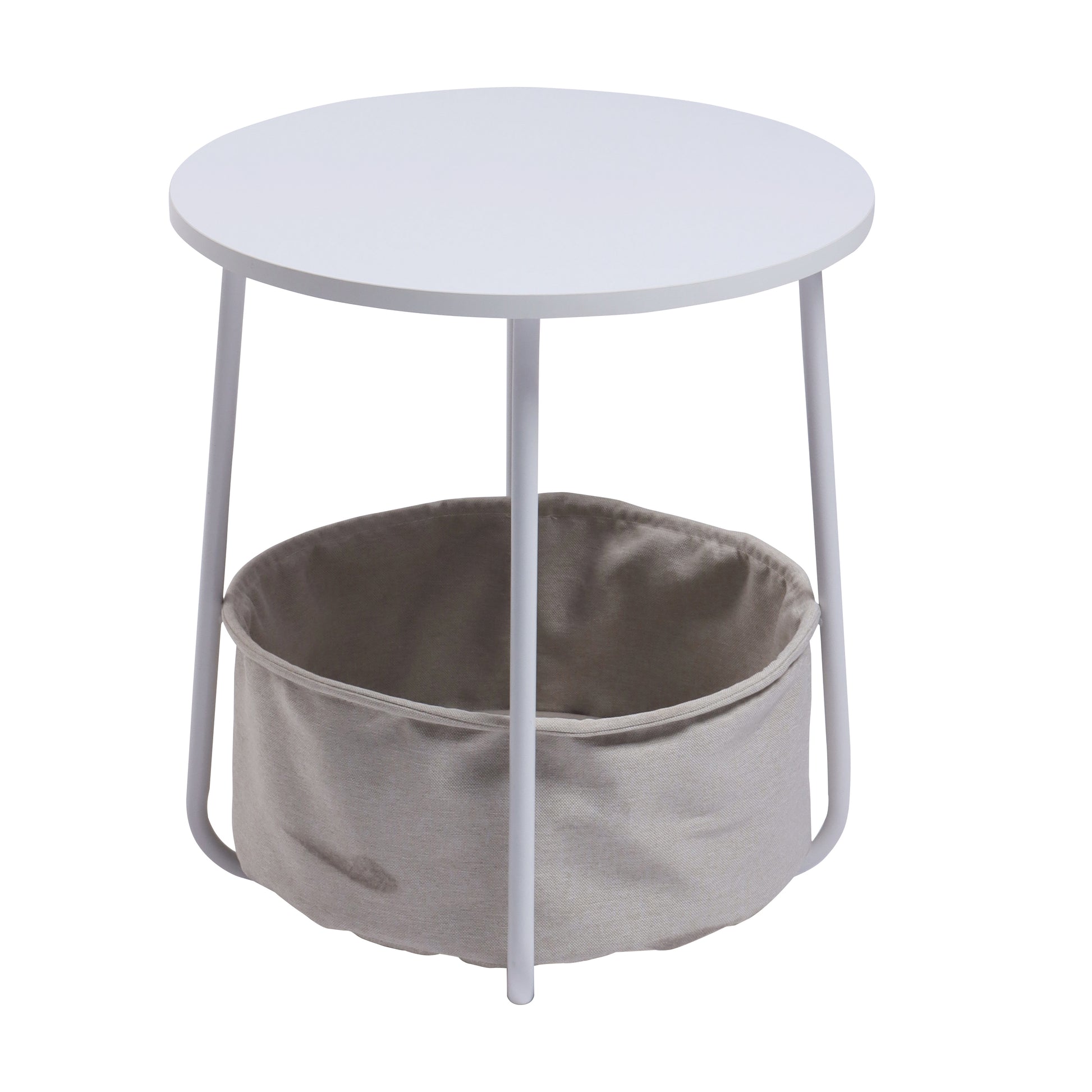 Compact, stylish, and practical, this round side table with a fabric basket underneath offers the perfect solution for storing essentials while enhancing your modern decor.