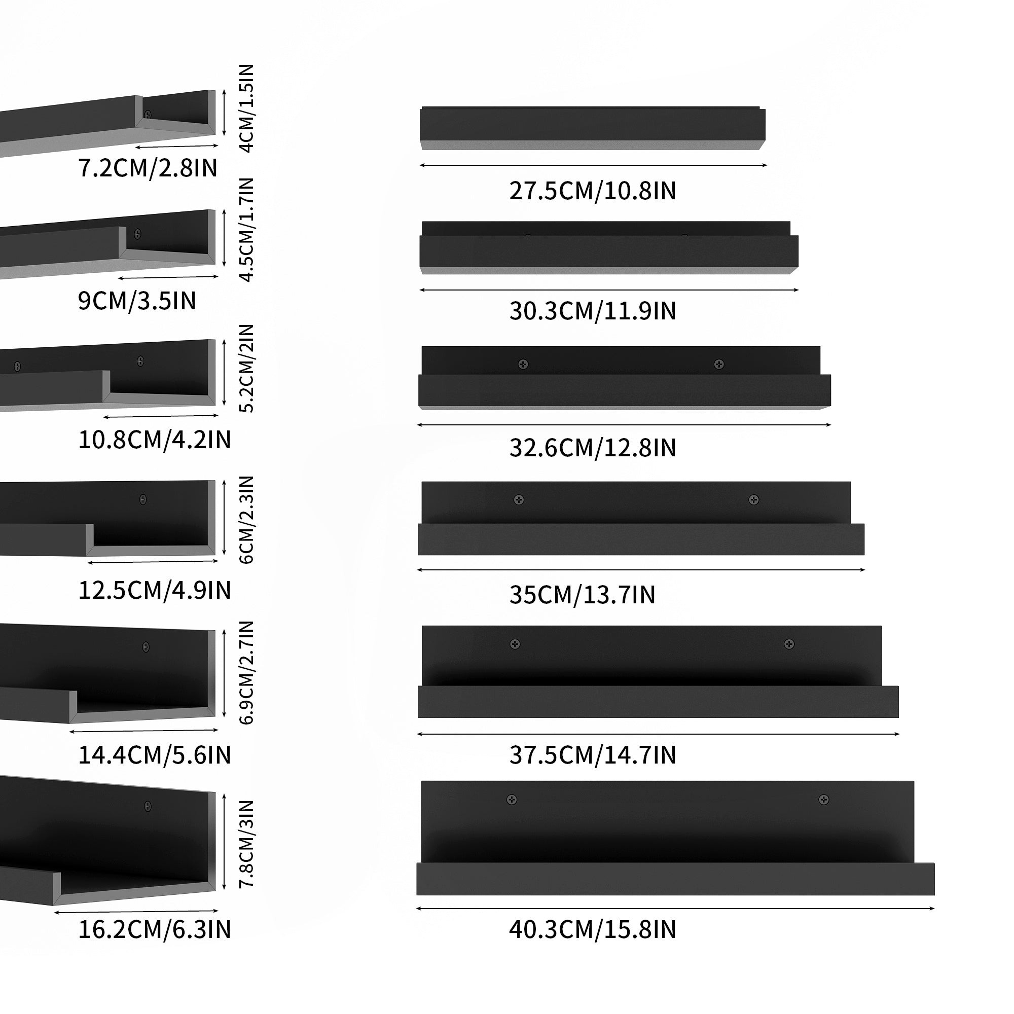 UDAY Black Picture Ledge Shelves Set of 6 Wall Mounted Display Shelves with Front Lip for Living Room Bedroom Nursery
