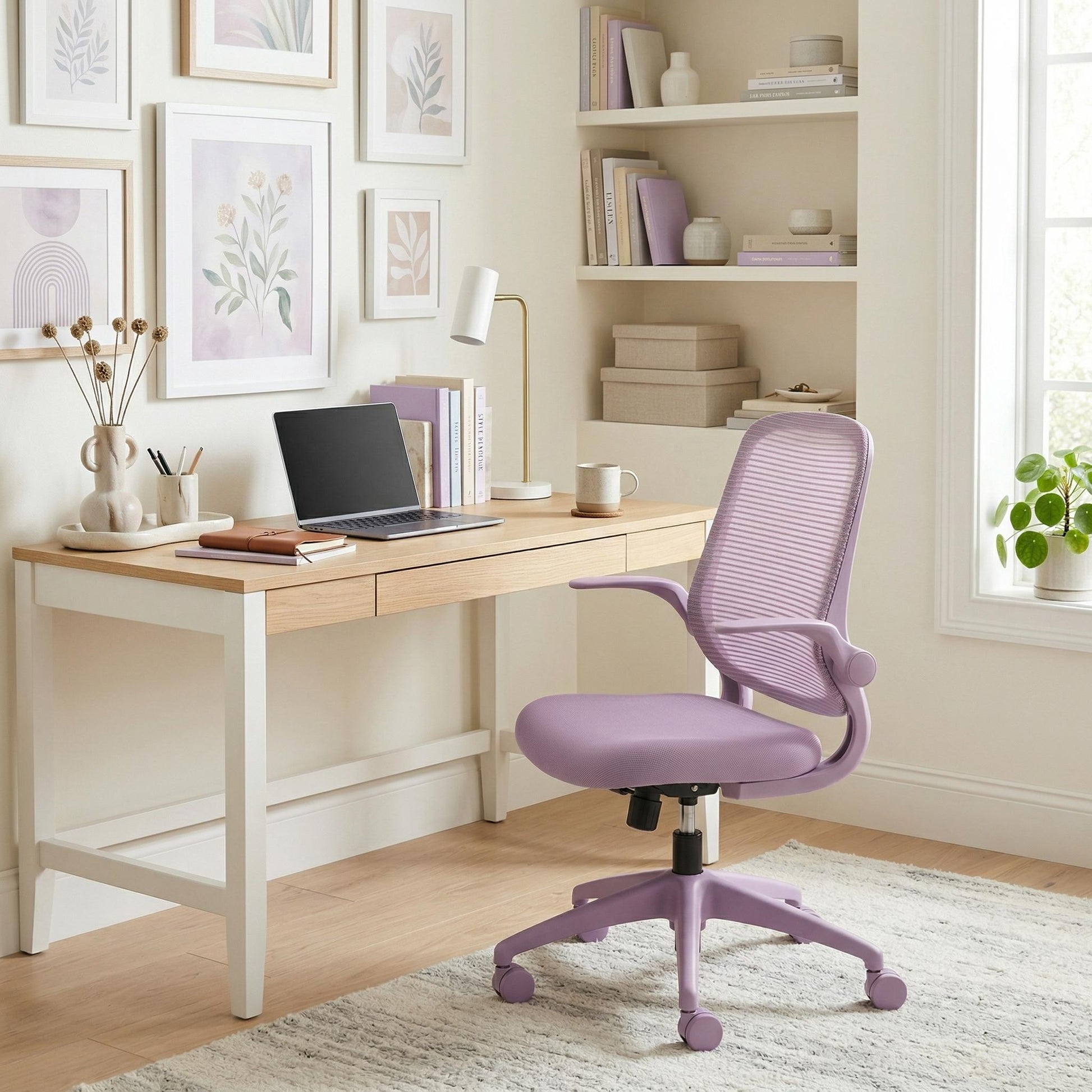 The Verlon mesh office chair keeps things light, breathable, and out of the way. Flip-up armrests tuck away when you need to pull closer to the desk, and the contoured mesh backrest follows the curve of the spine without trapping heat. Available in five colors with a full tonal finish from frame to casters.