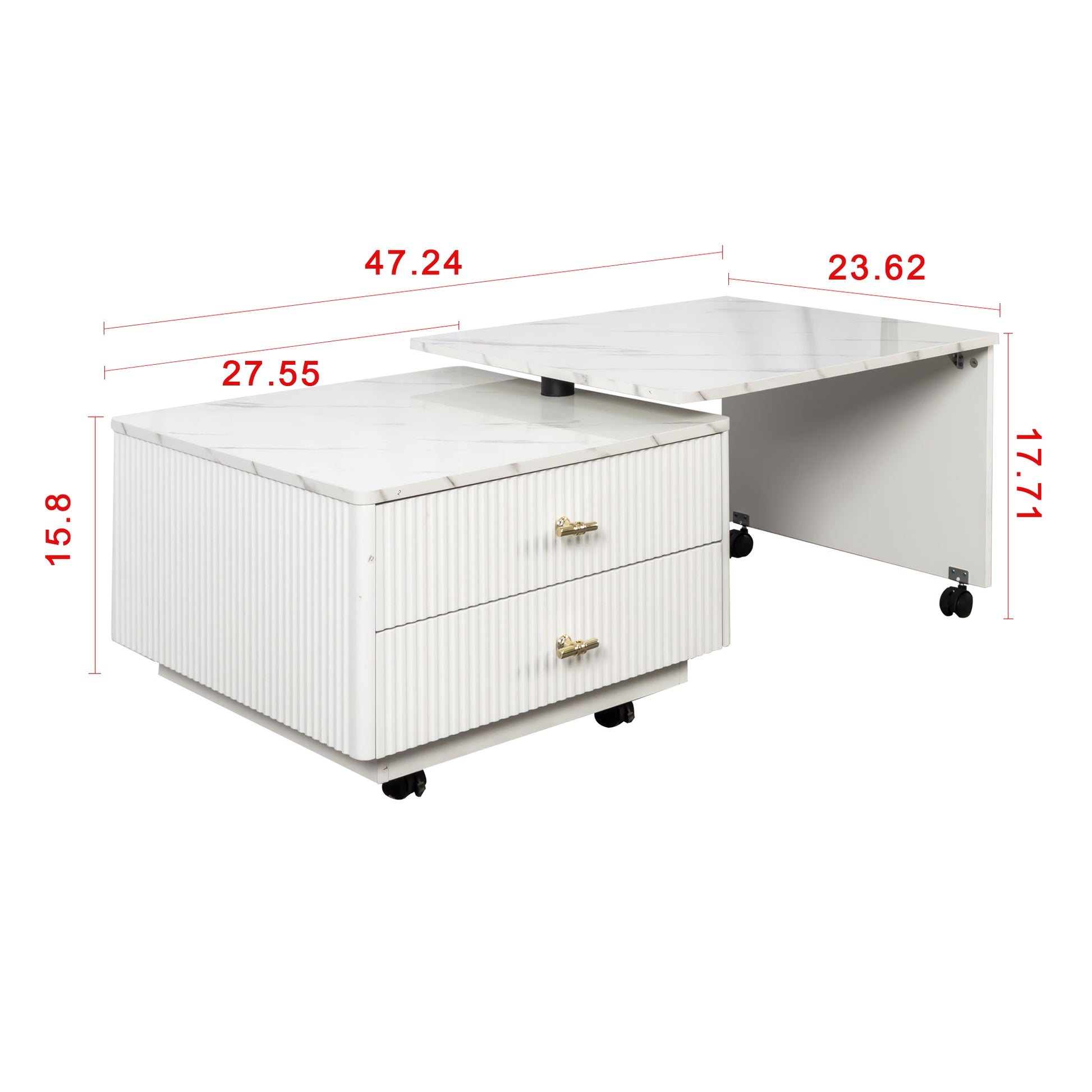 Vesta 47.24" Modern White Extendable Coffee Table with Storage Drawers and Wheels