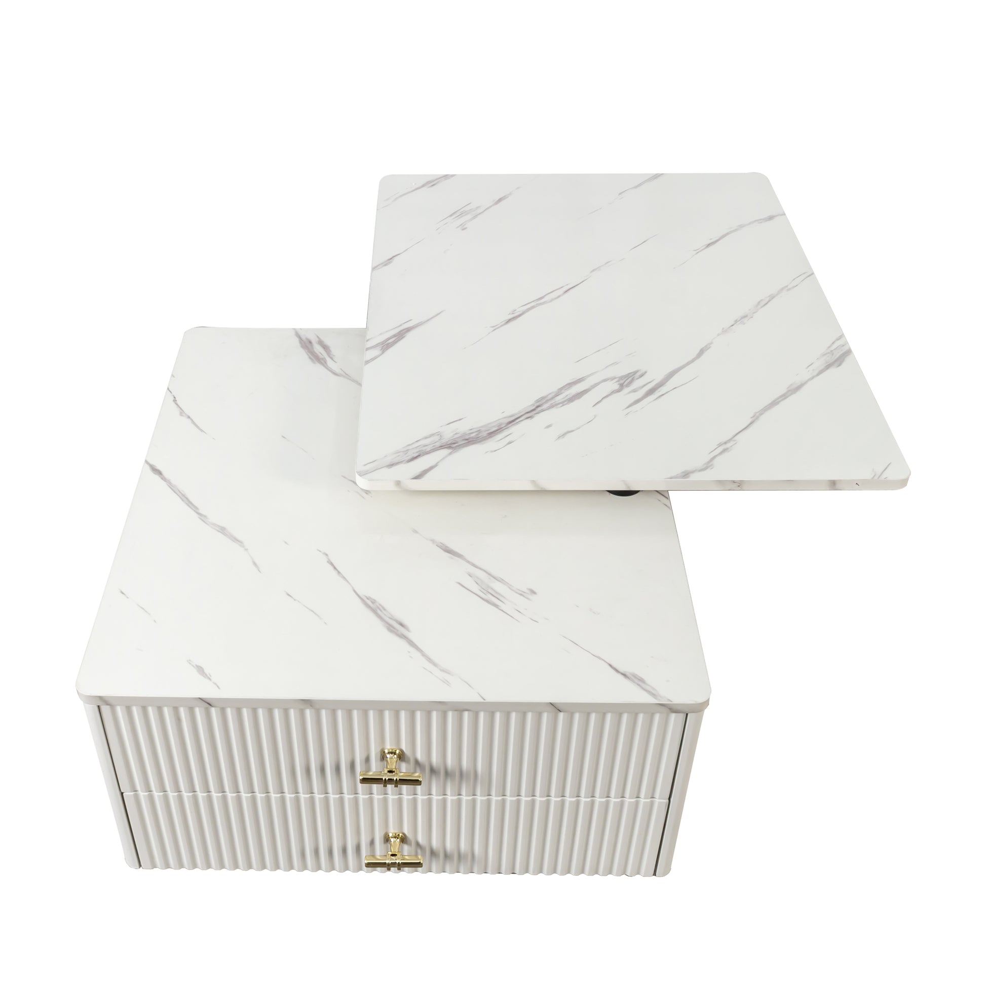 The Vesta modern extendable coffee table combines versatility, elegance, and smart design. With a rotating double tabletop, two drawers, and smooth caster wheels, it blends storage, movement, and style for the perfect living-room centerpiece.